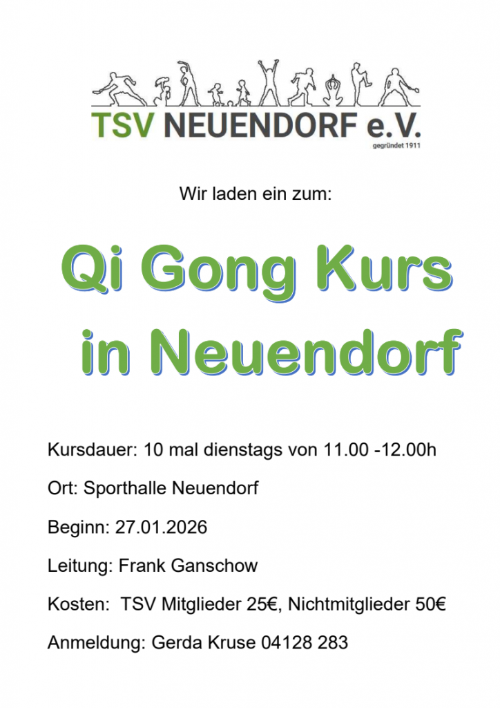 Der TSV bietet ab dem 14. Februar 2023 zum zweiten mal einen zeitlich begrenzten Qi Gong Kurs an: